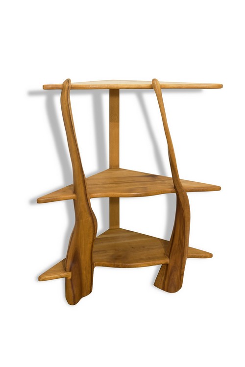 Mueble esquinero. Patas de madera de ciruelo y baldas de madera de cerezo